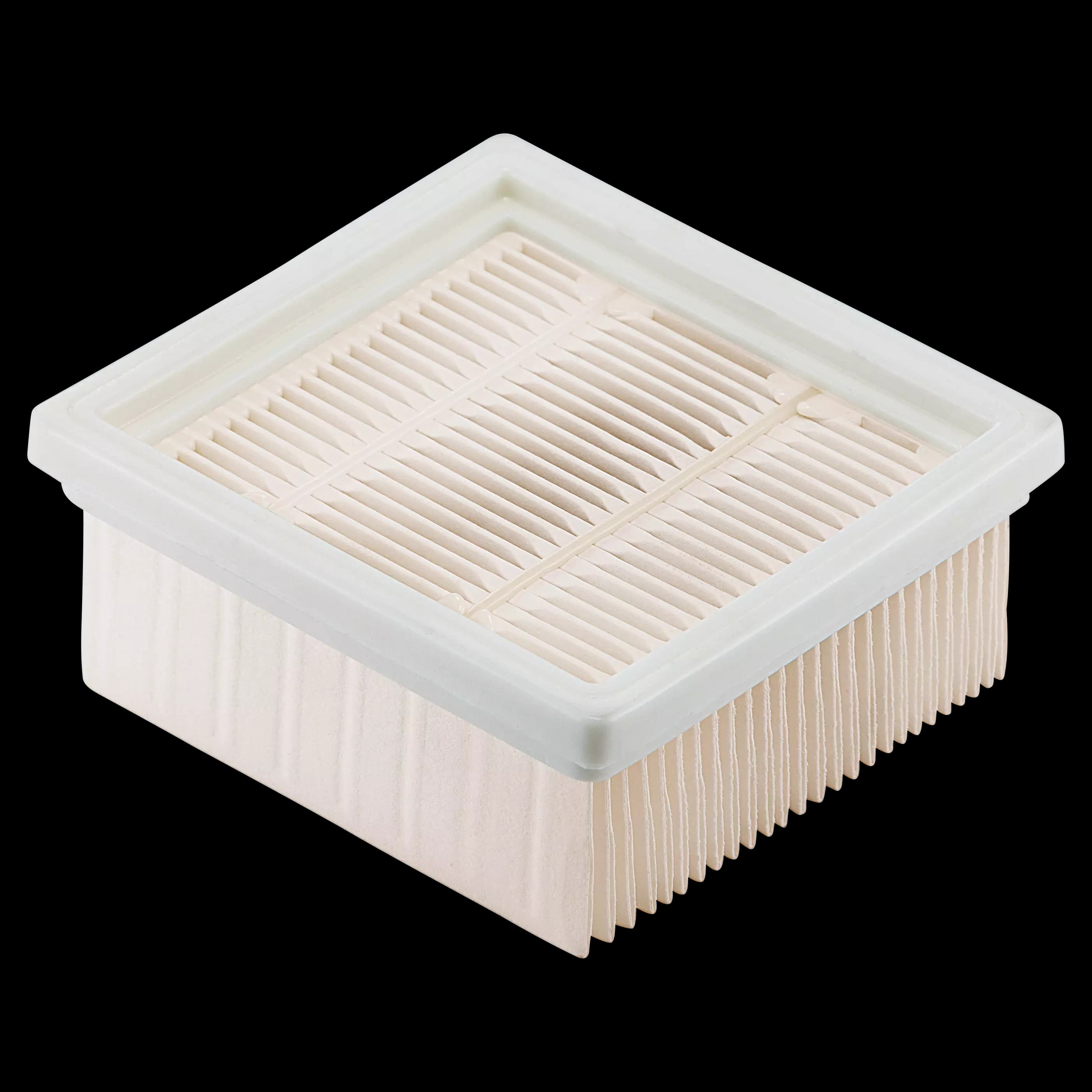 Επίπεδο πτυχωτό φίλτρο από χαρτί κατηγορίας H/HEPA 13. Από ειδικό υλικό με διαπερατότητα < 0,005%. Ανθεκτική στη βρομιά επιφάνεια και μεγάλη διάρκεια ζωής.