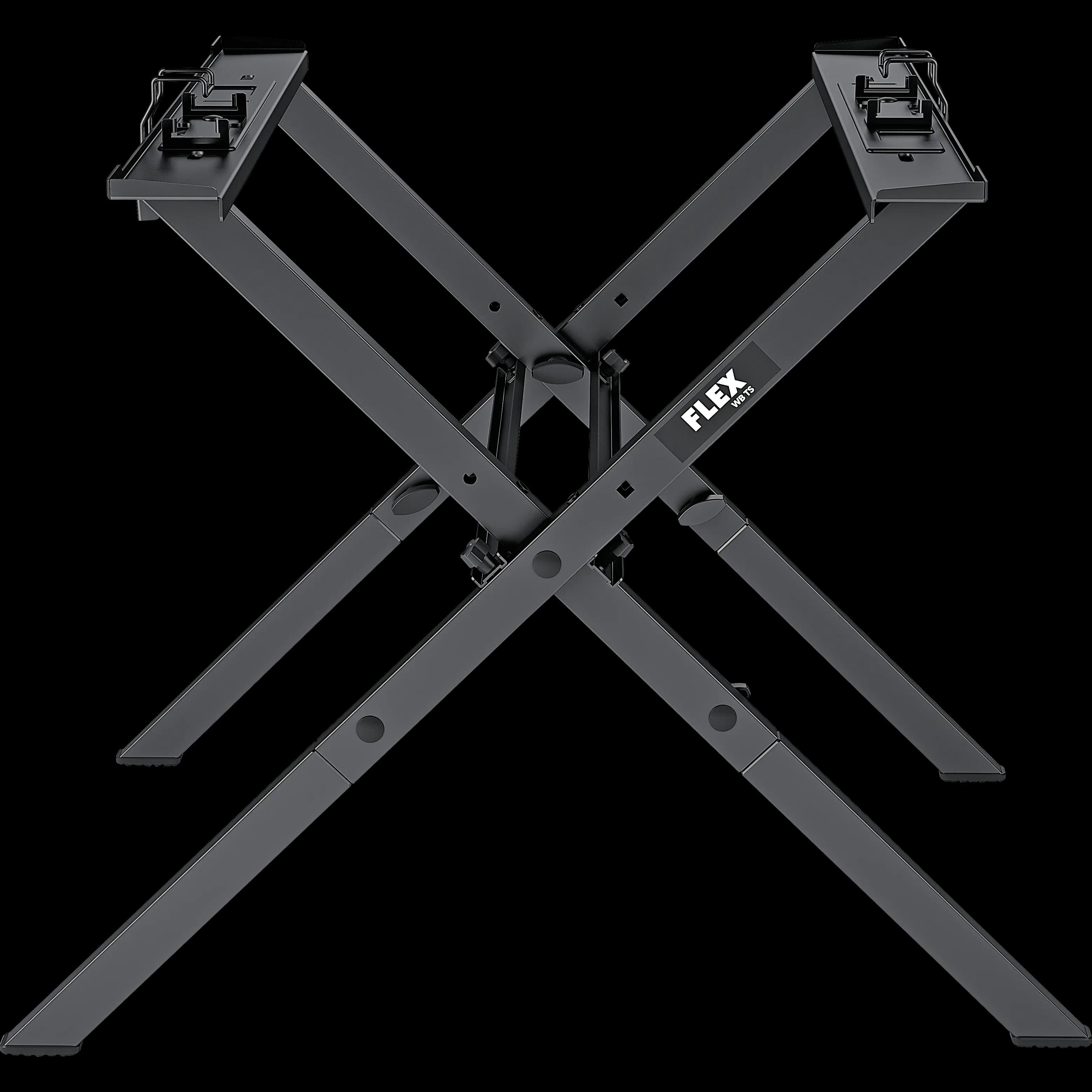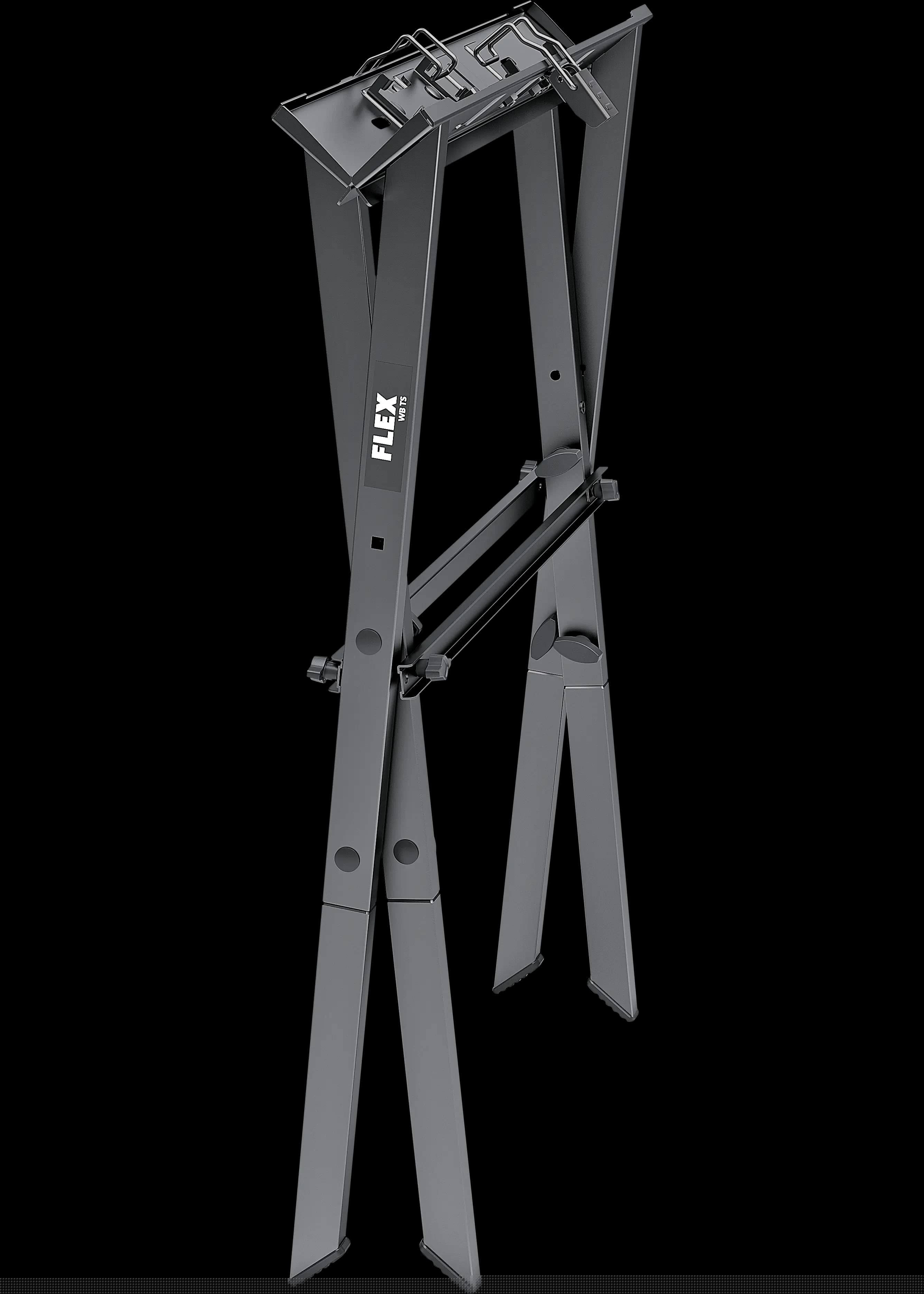 Lightweight and stable base frame with comfortable working height of 922 or 942 mm, foldable for transport. The cordless benchtop circular saw can be attached without tools by using clamps at the front and rear. With end caps for stability and to protect against scratches.
