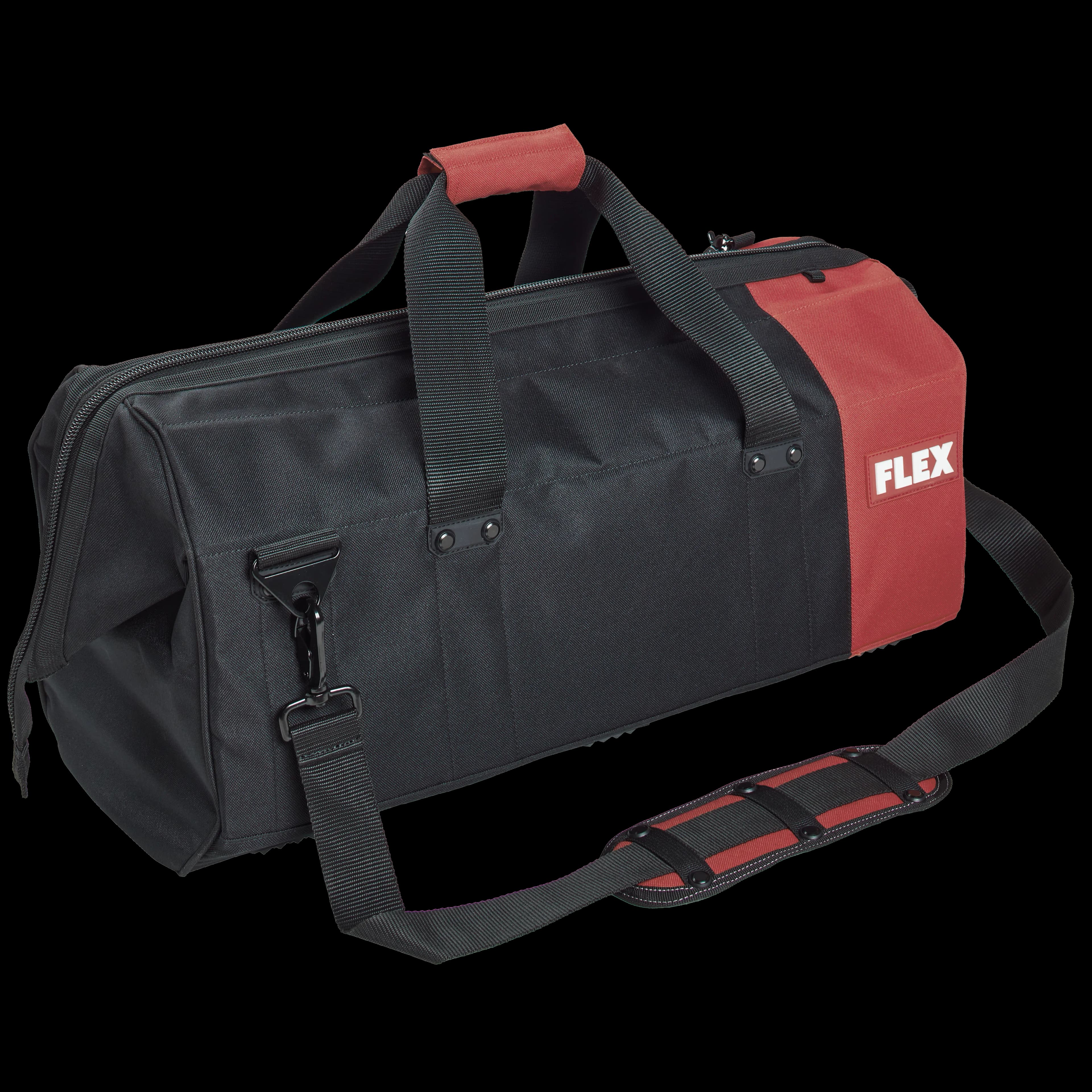 Práctica bolsa de transporte de material textil resistente, con refuerzo de plástico y abertura muy ancha. Con mucho espacio en el interior para hasta tres máquinas, así como compartimentos para accesorios como baterías, cargador, etc. Equipado con patas de goma, cremallera con cierre, correa de transporte acolchada y asas reforzadas con acero.