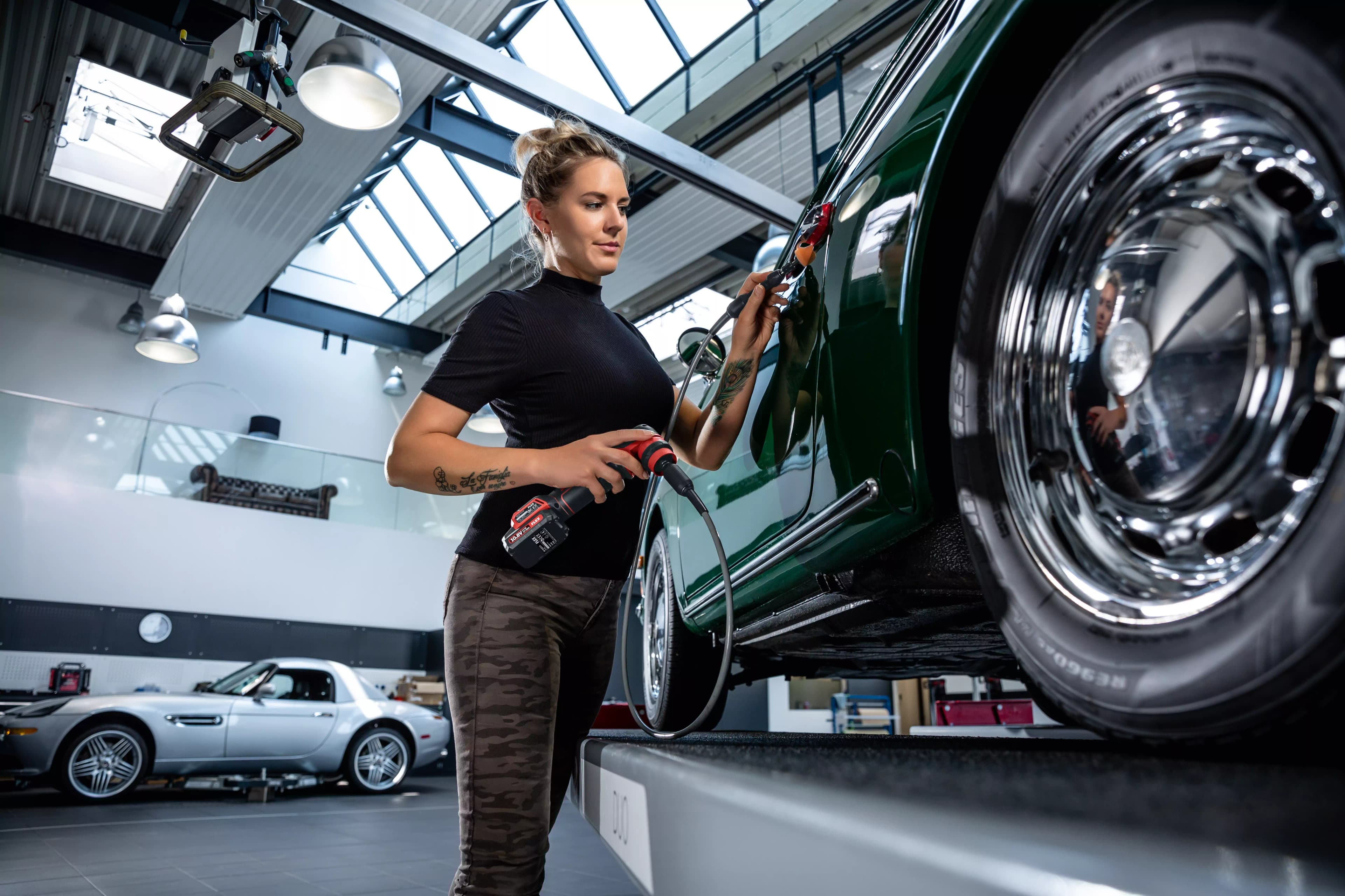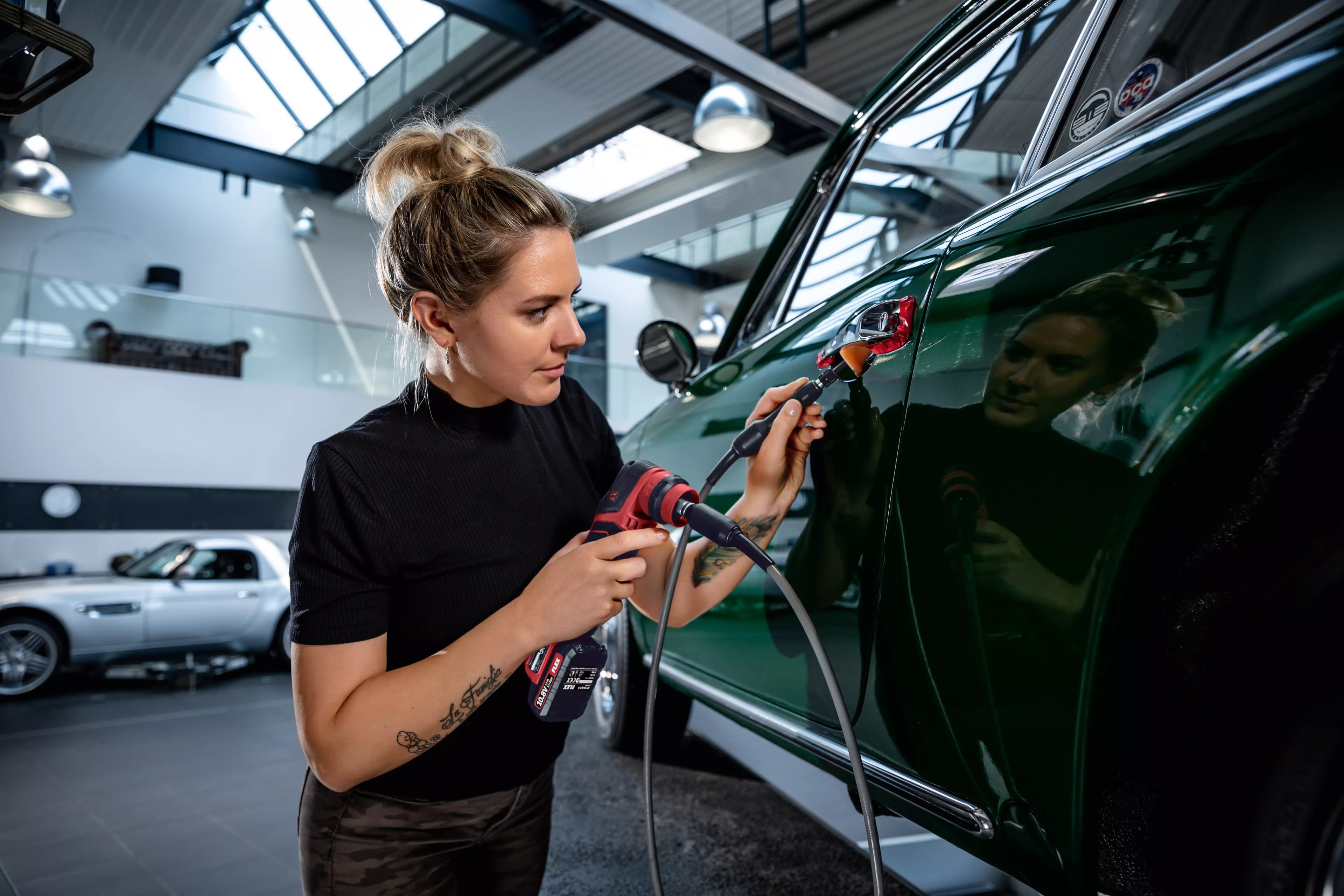 Grazie all'albero flessibile, la lucidatrice PXE 80 10.8-EC si trasforma in un sistema innovativo per la riparazione di spot, la lavorazione di angoli e spazi difficilmente accessibili, altrimenti non trattabili con lucidatrici convenzionali. Lunghezza 1400 mm per max. 6000 g/min Materiali di alto pregio garantiscono una lunga durata utile. Montaggio alla PXE senza attrezzi tramite meccanismo di cambio rapido e agevole sostituzione dell'accessorio grazie all'alloggiamento per bit. Perfetta ergonomia con zona d'impugnatura particolarmente sottile e posizioni di presa ideali per la guida precisa dell'attrezzo ed eccellenti risultati di lavoro. Set composto da 1 valigetta di trasporto L-BOXX® 102, 12 spugne di lucidatura a forma conica e 12 a forma cilindrica con grado di durezza morbido, medio e duro (4 cad.).