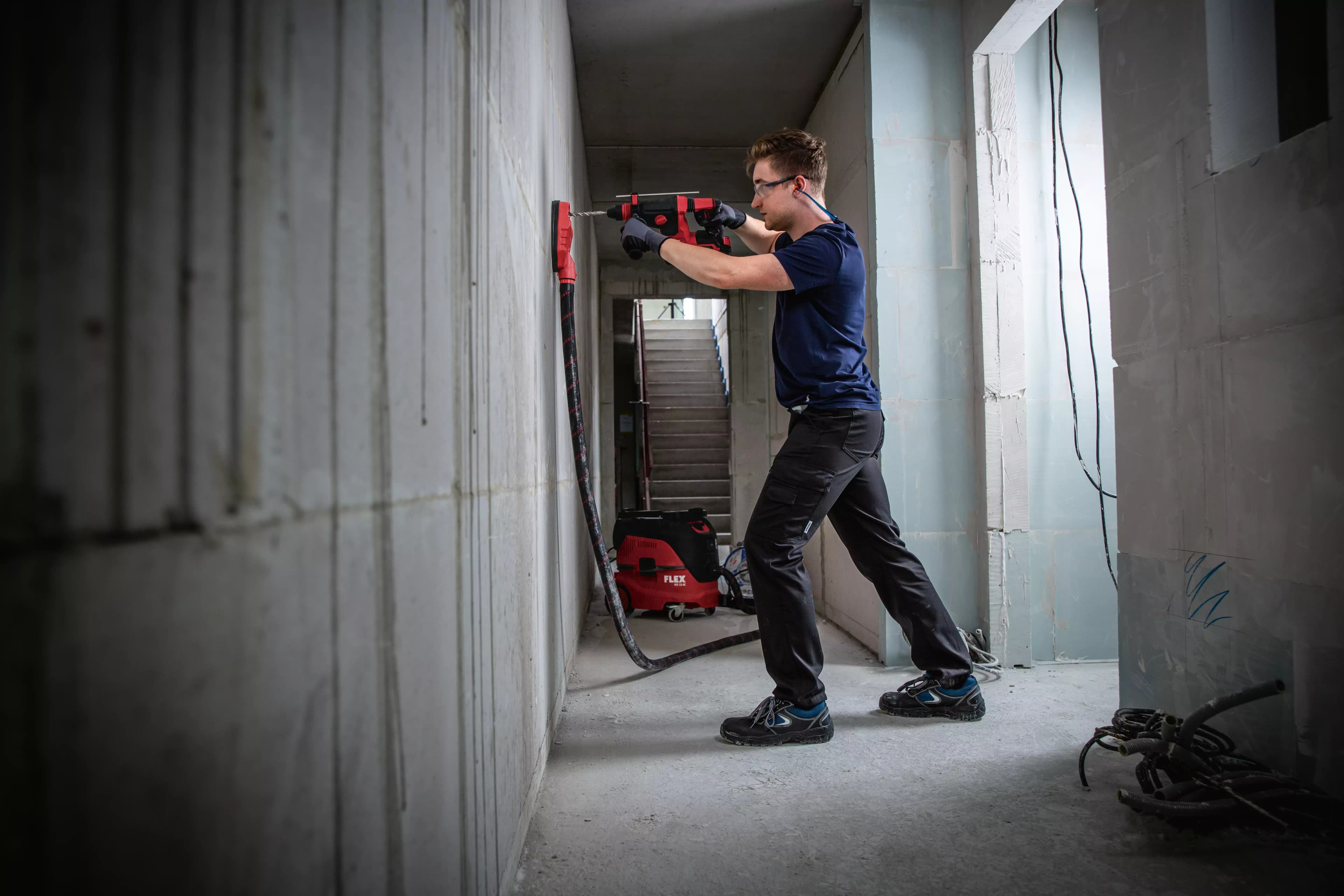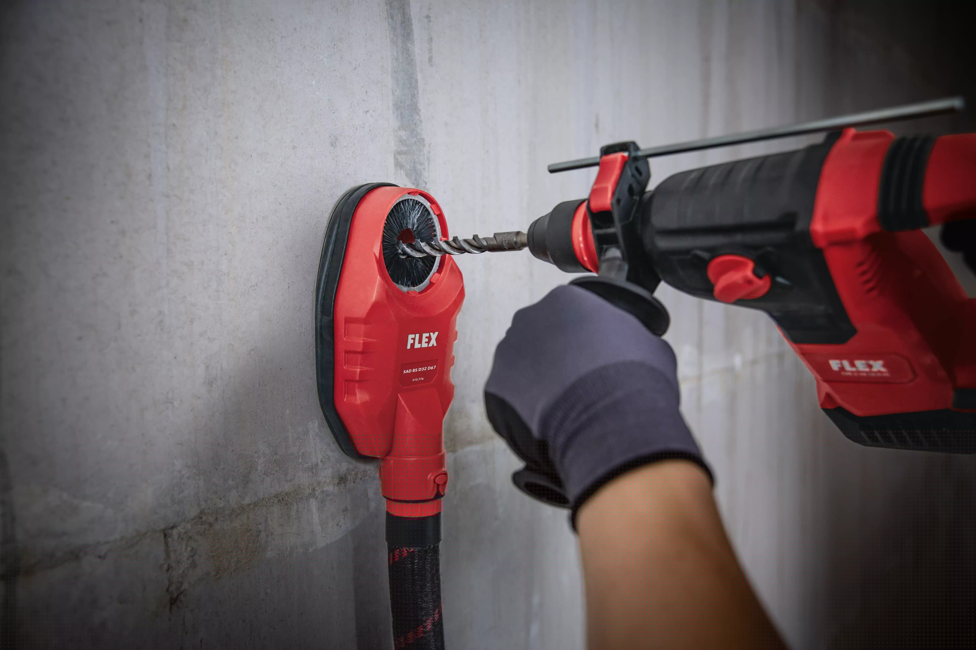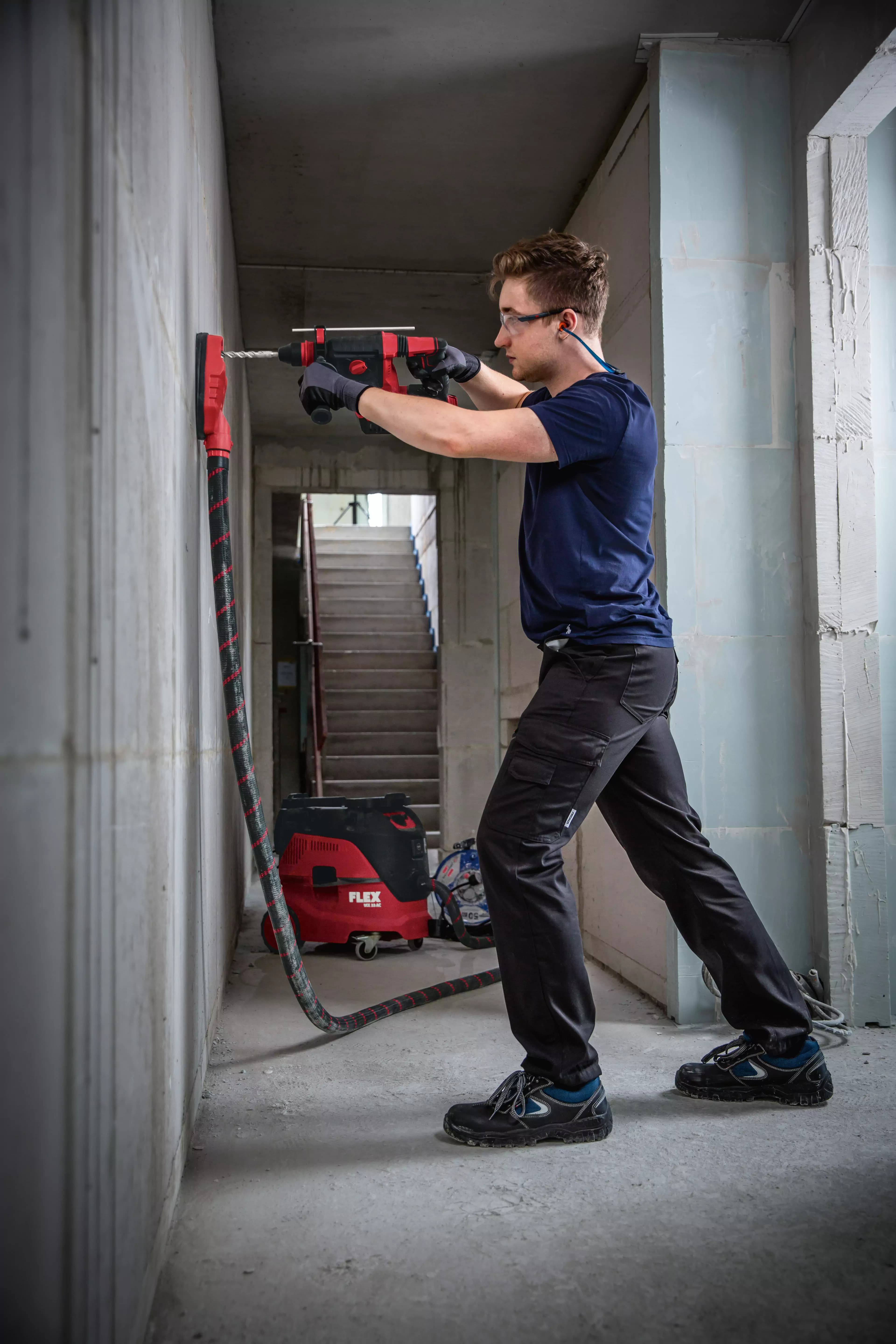 L’aspirazione della polvere di foratura è composta da una grande camera a vuoto e una guarnizione in gomma morbida e flessibile. L’adattatore per polvere di foratura si attacca in questo modo saldamente anche a superfici irregolari, il potente flusso d’aria aspira la polvere e la convoglia dentro l’aspiratore. La spazzola perimetrale supplementare chiude automaticamente anche i fori più piccoli, evitando la fuoriuscita della polvere all’esterno. Non si formano residui di polvere. Per lavori di foratura fino ad un diametro di 67 mm. Attacco a clip per tubo flessibile Ø 32 mm.