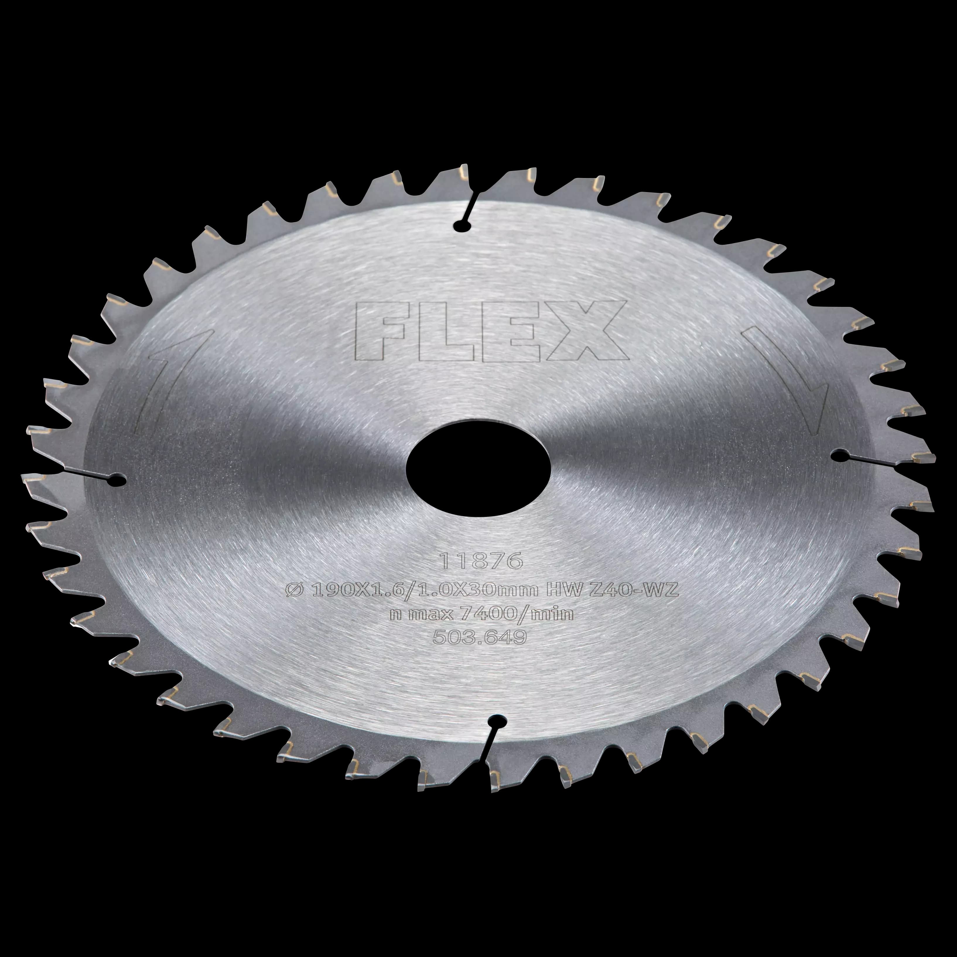 Voor afkort-trekzaag. Voor dwarszaagsneden in massief hout en splintervrije zaagsneden in houtmaterialen met toplaag, zoals laminaat, plintlijsten en aluminiumprofielen.