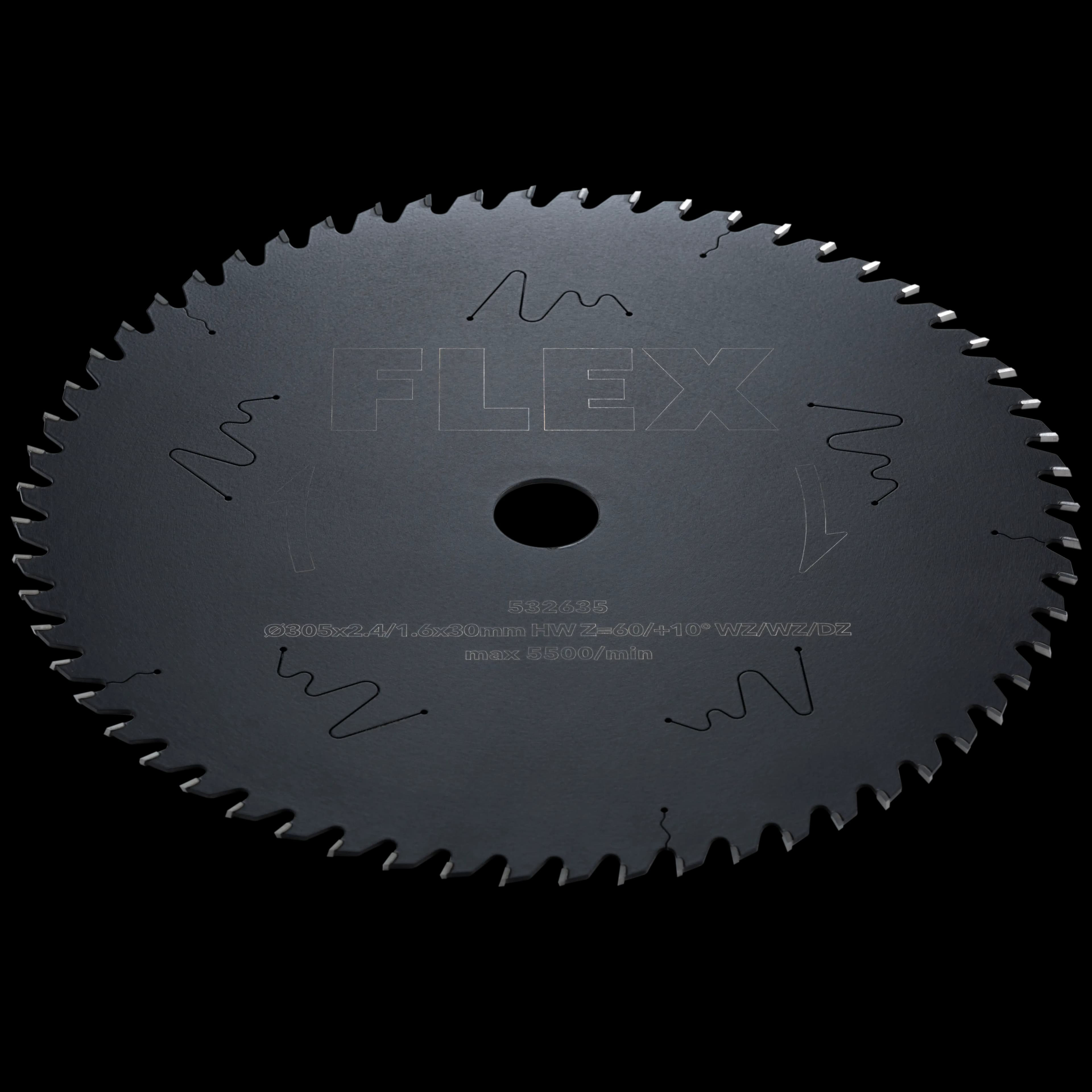 Voor afkort-trekzaag. Voor overdwars doorzagen van massief hout en splintervrije zaagsneden in gecoate houtmaterialen zoals laminaat, plintlijsten en aluminiumprofielen.