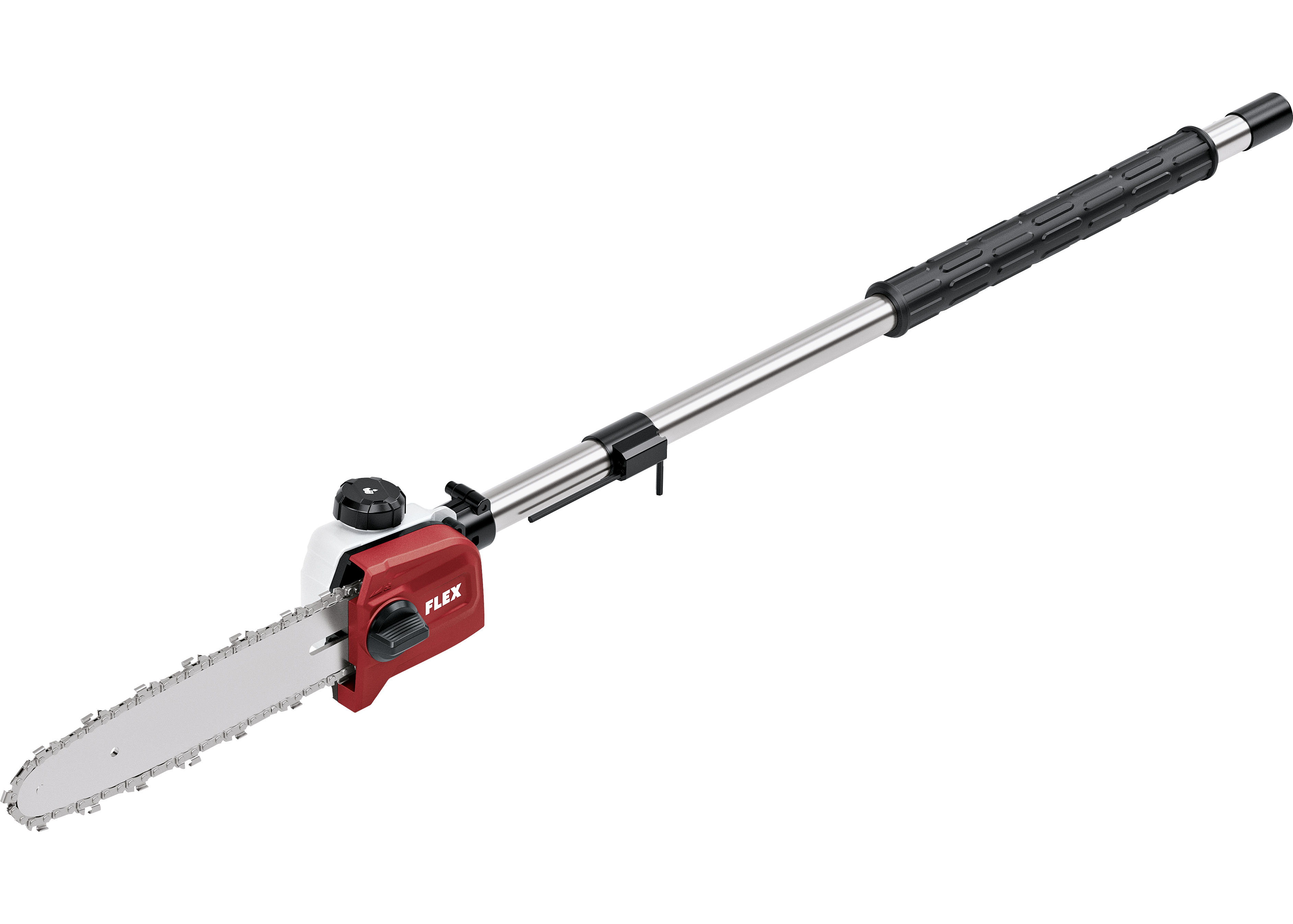 Zvláště zajímavý je nástavec na stříhání živého plotu GHT-A: Oboustranně broušený nůž zajišťuje čisté výsledky řezání a rychlý postup práce při pohybu vpřed i vzad. Díky možnosti nastavení úhlu od +90° do -80° lze řeznou hlavu dokonale přizpůsobit – ideální pro vysoko položená nebo těžko přístupná místa. Nástavec lze také zcela sklopit, aby se ušetřilo místo při přepravě.