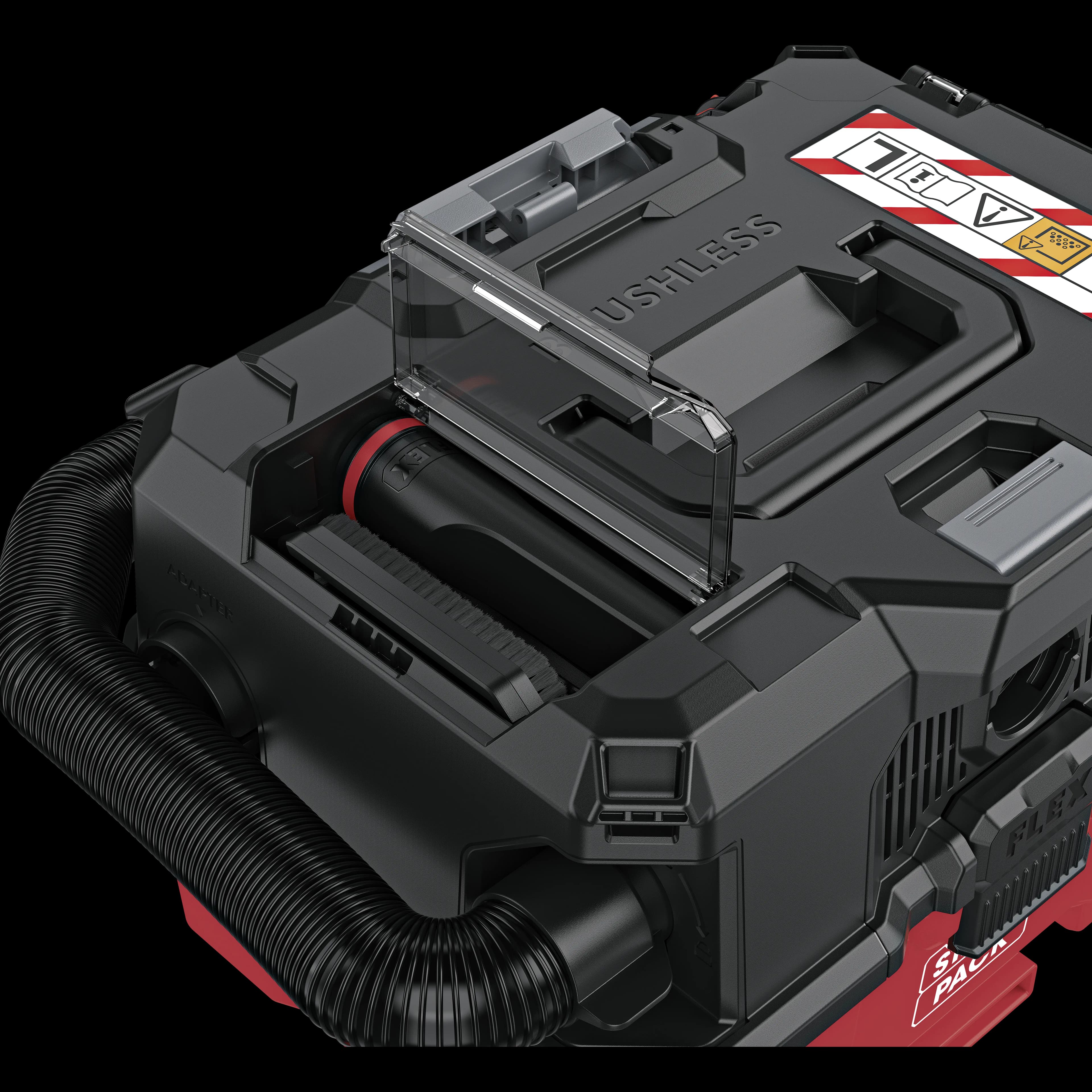 • Der Akku-Sauger ist kompatibel mit dem FLEX Aufbewahrungs- und Transportsystem STACK PACK. Damit lässt er sich mit weiteren Boxen für Werkzeuge und Zubehör problemlos zur Baustelle transportieren. Ineinandergreifende Schnellverbindungsverschlüsse bieten schnelle, flexible und mühelose Verbindung der Bestandteile