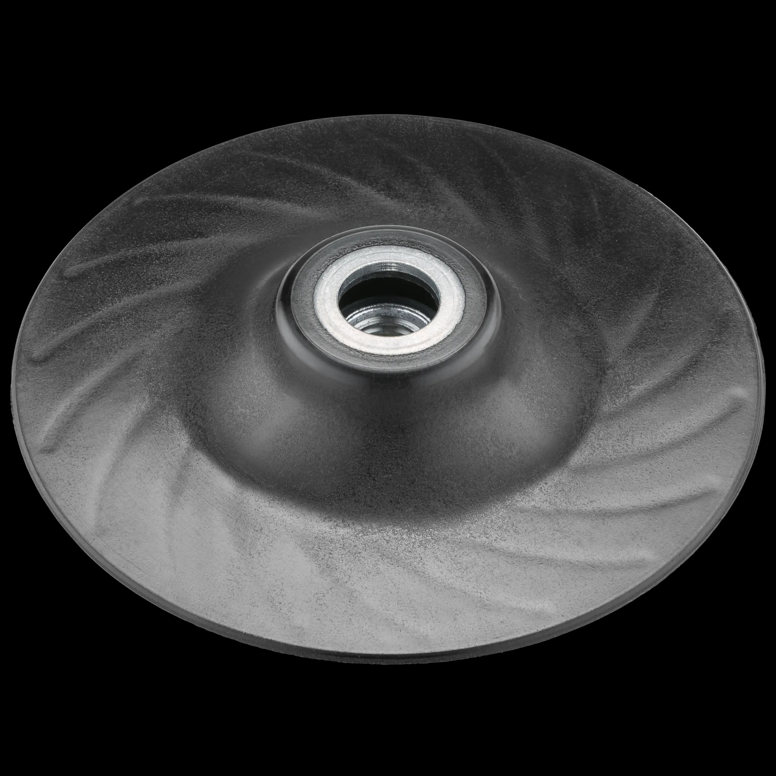 Zur Verwendung von 125 mm Fiberschleifscheiben, mit Spannmutter M14. Einsatz: zum Entgraten, Entrosten von Metallteilen sowie allgemeine grobe Schleifarbeiten. Die auf der Schleiffläche radial verlaufenden Kühlrippen verringern Überhitzung von Werkstück und Stützteller. Geeignet für alle FLEX Winkelschleifer außer L1606 VR/L1603 VR.