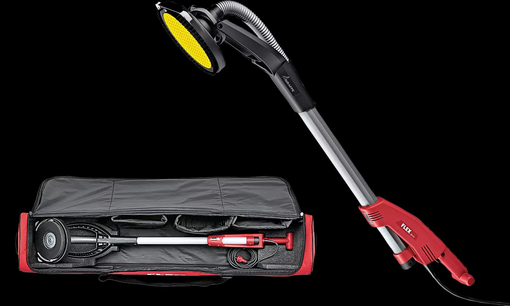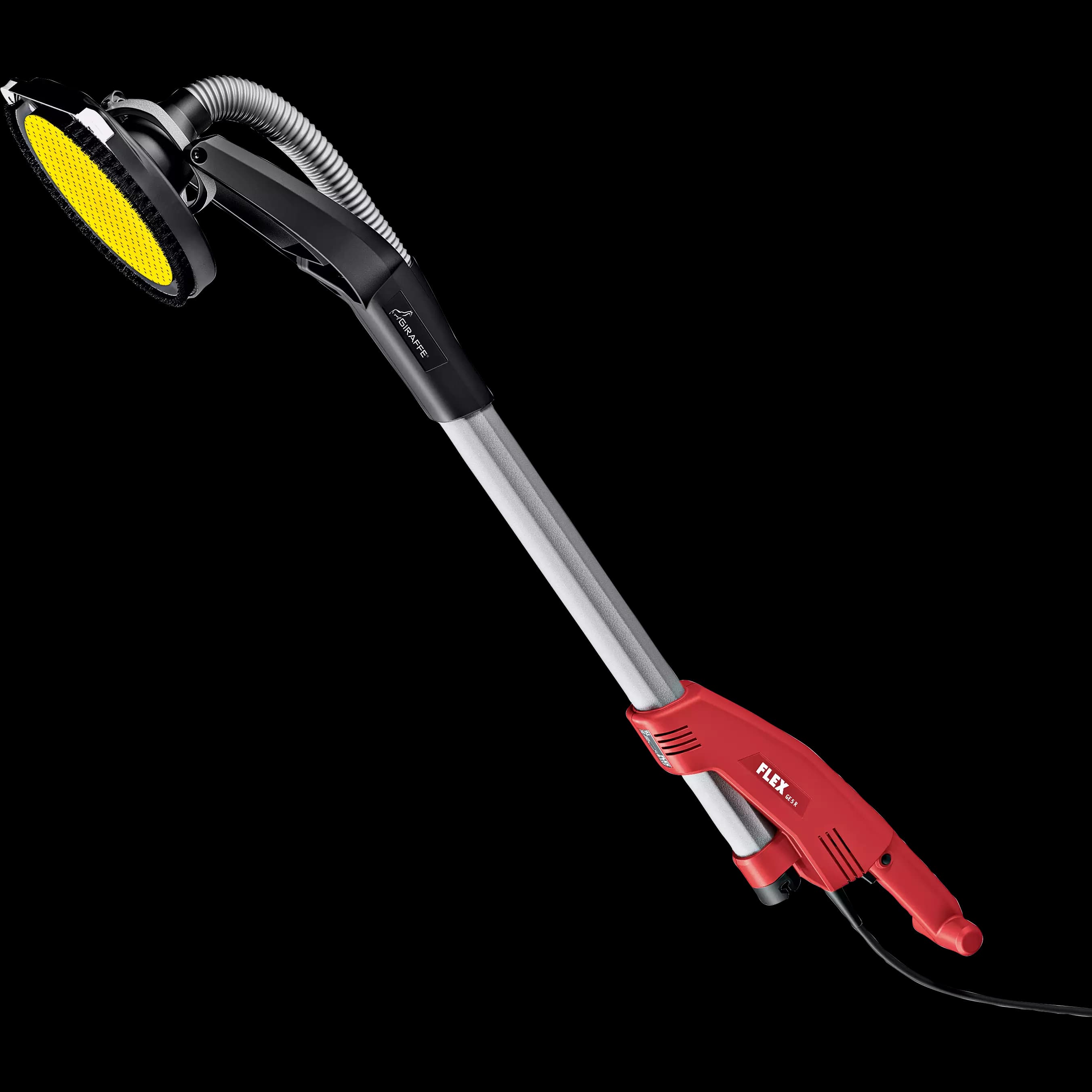 You demand perfect results. Use the cordless long-neck sander with the innovative FLEX interchangeable head system to effortlessly achieve perfect results The right sanding head for every job and any construction site: Edge, corner and border working, with both rotary and random-orbit sanding heads. The Cordless Giraffe allows drywall, wall and ceiling surface sanding with perfect results and won't tire you out. You can also use it to quickly prepare large surfaces. The FLEX Cordless Giraffe, also known as a drywall sander, ceiling sander or plaster sander, is the perfect companion for painters, drywallers, plasterers, fitters, and for carpentry and wood construction jobs.