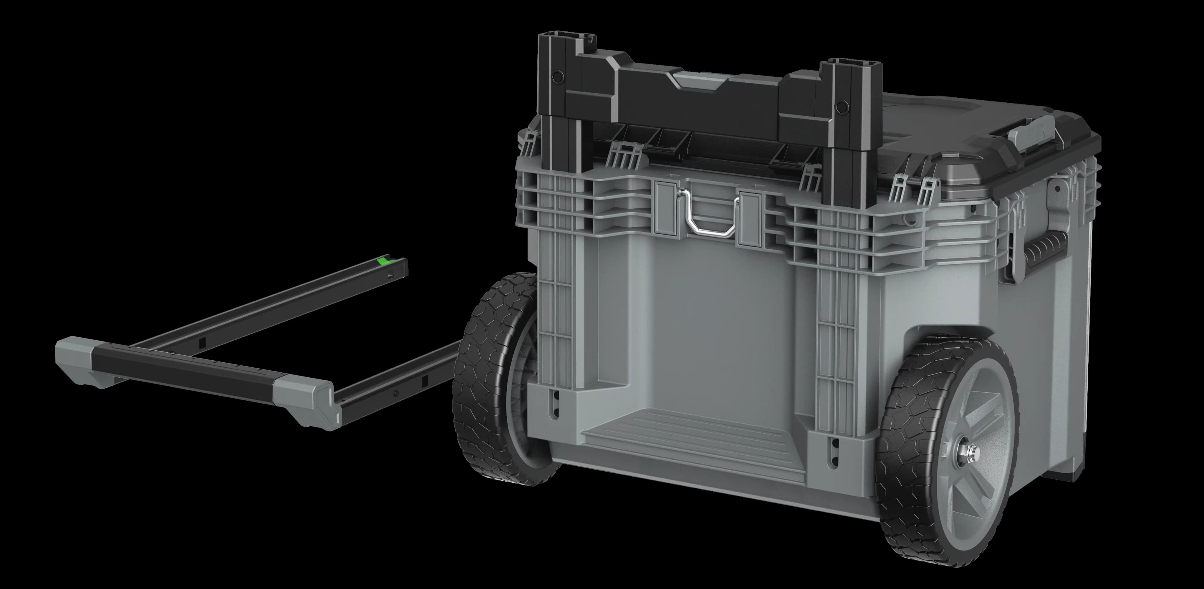 Tools and accessories can be easily transported to the construction site with the robust STACK PACK storage and transport system. The boxes are made of impact-resistant plastic with aluminium-reinforced corners, protecting tools and accessories from the toughest construction site conditions. The boxes have a durable metal latch, with additional handles ensuring flexible and comfortable handling. Interlocking quick-connect fasteners allow fast, flexible and effortless connection of the individual boxes so that the storage system can be assembled according to the user’s specific needs. The standard kit consists of a trolley with removable telescopic handle, with Ø 23 cm robust wheels, a large carrying box and a medium box with gas struts, plus a Big Organizer with a transparent lid.