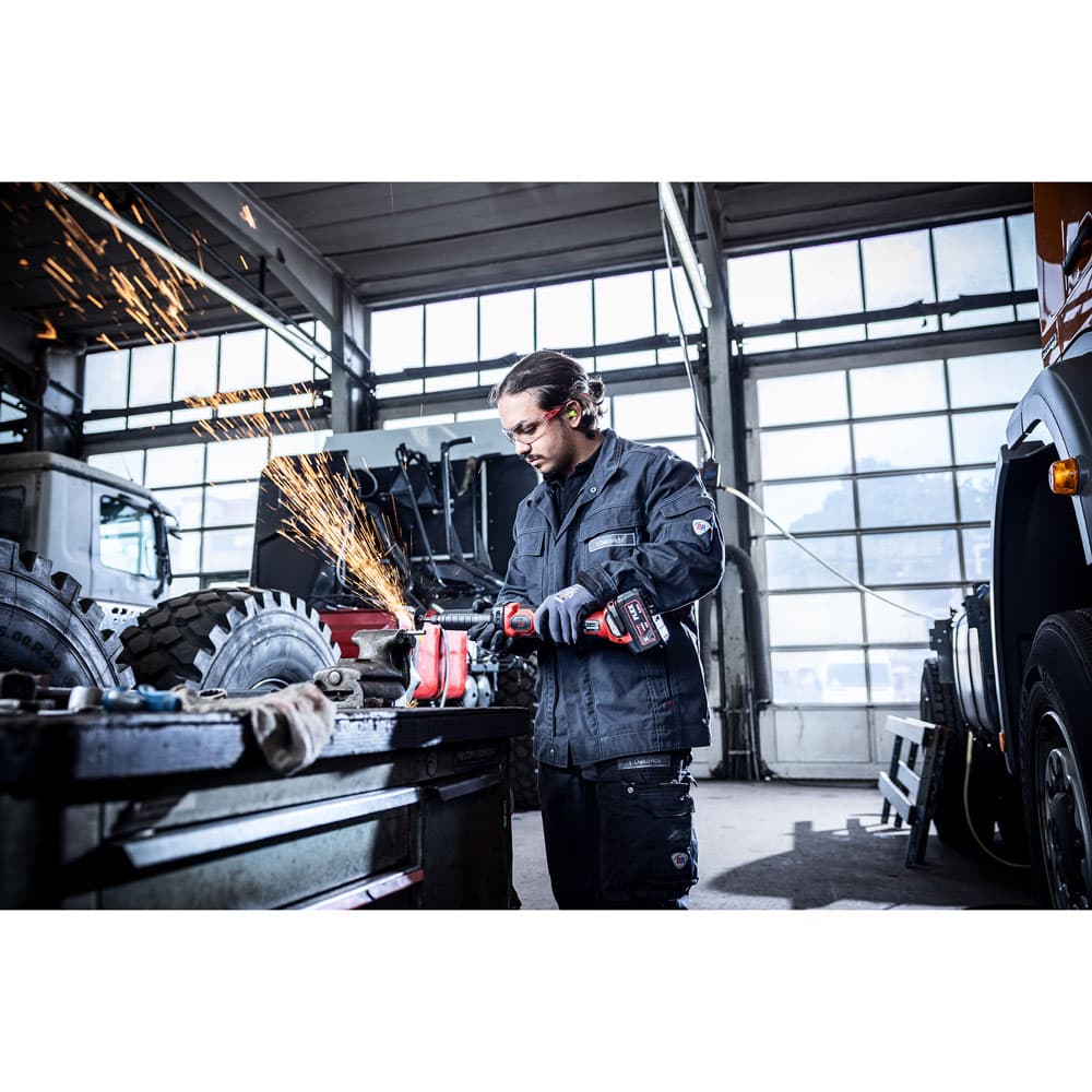Che si tratti di eseguire lavori di levigatura, sbavatura, fresatura a mano libera, troncatura, asportazione di ruggine in spazi ristretti o di difficile accesso o aperture per porte: le levigatrici diritte sono fra i macchinari di base irrinunciabili. Con l’introduzione della levigatrice diritta a batteria, FLEX amplia ulteriormente la già ricca gamma di utensili per il settore costruzioni in metallo. Come una delle poche levigatrici diritte a batteria presenti sul mercato, la DGE 25 18.0-EC con regolazione variabile della velocità si adatta perfettamente allo specifico campo applicativo e d’impiego. La preselezione del numero di giri in quattro stadi offre velocità comprese fra 10.000 e 25.000 giri al munito. In più, il nuovo utensile a batteria è uno dei soli due modelli presenti sul mercato con arresto del mandrino e, di conseguenza, con la possibilità di cambiare l’accessorio in soli 15 secondi. Una circonferenza di presa dell’utensile di soli 147 millimetri assicura inoltre una buona maneggevolezza. La calotta di protezione sull’impugnatura per una guida sicura dell’utensile, la griglia di protezione antipolvere in metallo e l’interruttore di On/Off laterale bloccabile offrono maggiore sicurezza operativa. Il motore EC brushless da 18.0 Volt garantisce la massima efficienza nelle applicazioni.