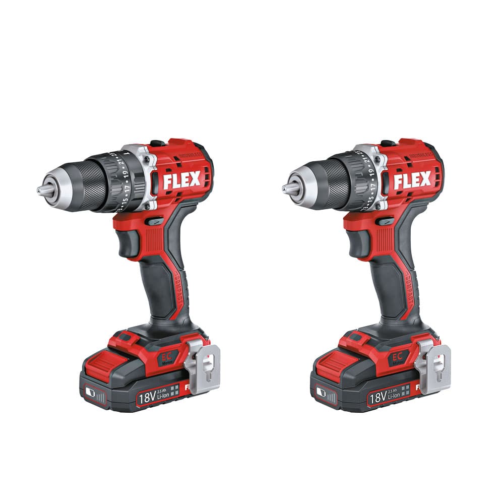 De robuuste uitvoering met metalen boorhouder (spanwijdte 13 mm) en metalen overbrengingsbehuizing maken het compacte gereedschap tot een ideale metgezel bij mobiele werkzaamheden. De krachtige brushless EC-motor van 18 V staat borg voor een hoge efficiëntie en een lange levensduur. Een ergonomisch ontworpen handgreep, een geïntegreerde ledlamp met nachtlichtfunctie evenals een rechts-/linksloop met inschakelblokkering zorgen voor een goede grip en een veilig gebruik. De nieuwe 18V-accuboorschroefmachines DD/PD 2G 18.0-EC LD zijn naar keuze leverbaar in een transportkoffer met standaardlaadapparaat en 2 x 18V-accu van 2,5 Ah inclusief bithouder en riemclip of als losse machine. Als systeemtoebehoren biedt Flex naast snellaadapparaten en accu’s ook geschikte bitsets aan.