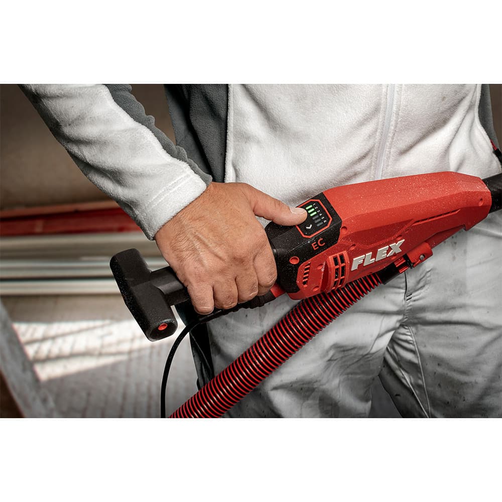 Zo ziet vooruitgang eruit: de nieuwe langnekschuurmachine van FLEX heeft 50 procent minder gewicht en 60 procent meer vermogen. Met deze waarden is het nieuwe GE 6 R-EC model de lichtste giraffe op de markt. Met een steel uit koolstofvezel, een cardanophanging van de schuurkop en een zwenkbereik van 160 graden is hij ergonomischer en efficiënter dan elke andere giraffe tot nu toe.
