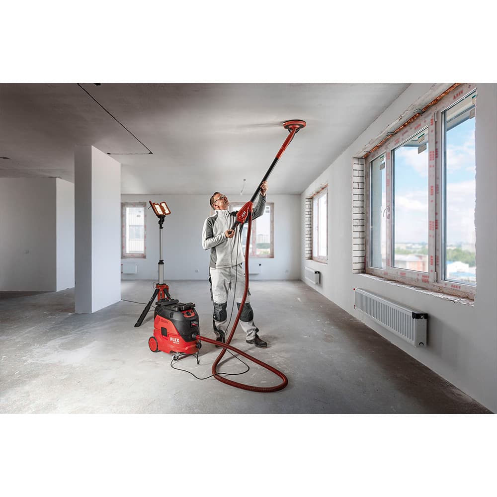 'Wat zijn de belangrijkste criteria voor een langnekschuurmachine?' vroeg het werktuigforum onlangs aan zijn lezers. 'Effectieve afzuiging, laag gewicht, de flexibiliteit van de schuurkop, goede schuurprestaties en optimale ergonomie', werden door de gebruikers als belangrijkste aspecten genoemd. Dus hebben de werktuigontwikkelaars van FLEX zich precies op deze eigenschappen gericht. En vandaag brengen ze bewust de lichtste giraffe aller tijden op de markt.