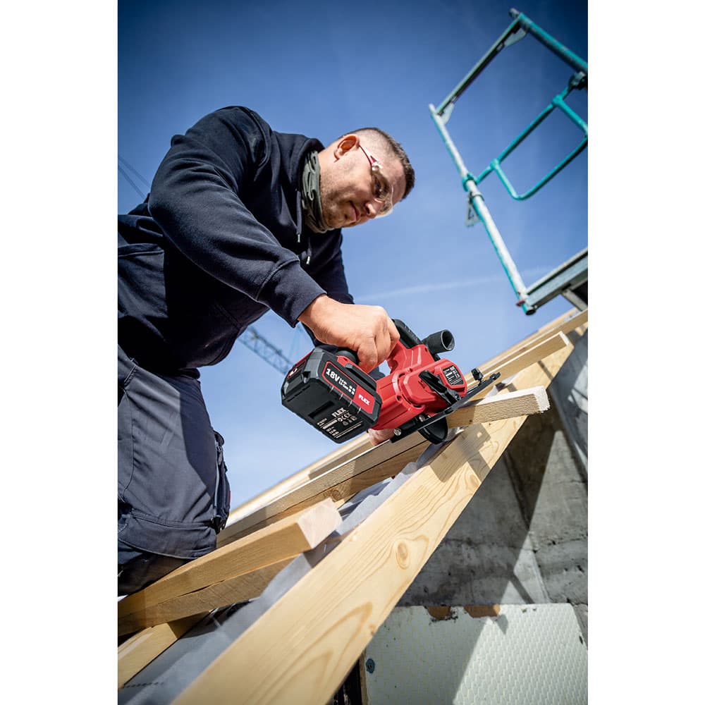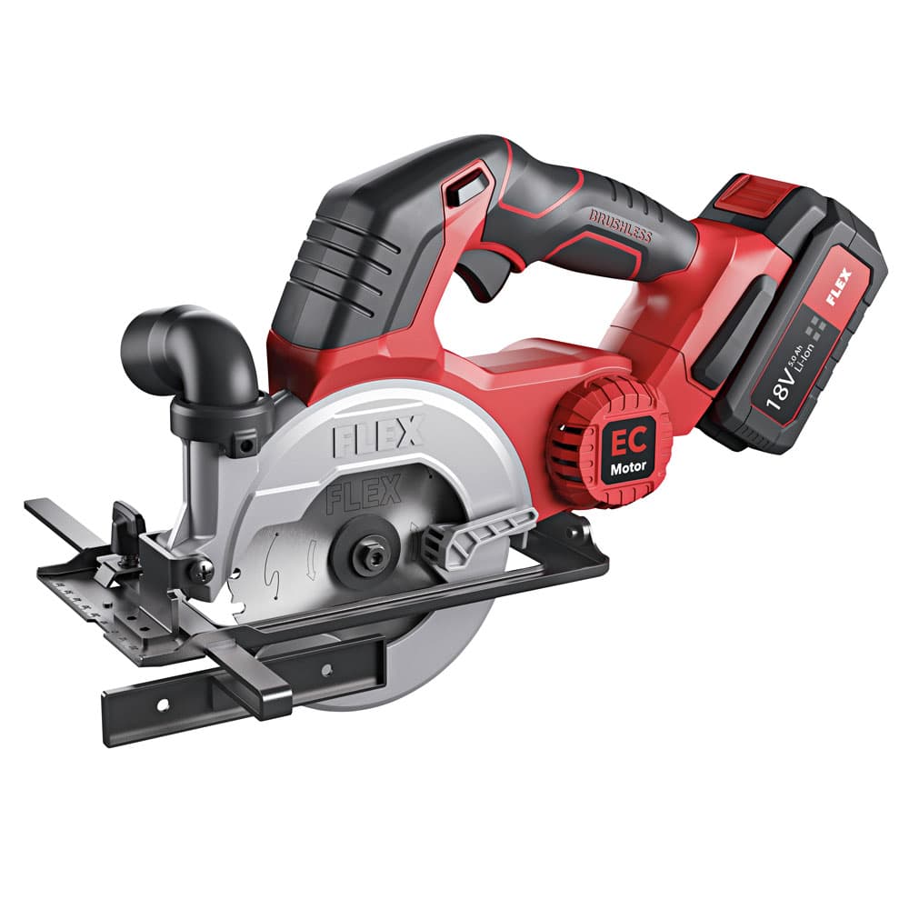 Voor de aandrijving maakt FLEX bij zijn nieuwe accu-handcirkelzaag gebruik van een borstelloze EC-motor. Deze zorgt in vergelijking met apparaten met een borstelmotor voor een aanzienlijk hoger vermogen en een langere levensduur. Met een gewicht van 3,2 kg inclusief accu is de zaag buitengewoon licht. Gekoppeld aan zijn compacte constructie is hierdoor langdurig werken zonder vermoeidheidsverschijnselen mogelijk. Ook de ergonomische handgreep helpt daarbij. Met de zaag is een zaagdiepte van maximaal 46,5 millimeter mogelijk en het onbelaste toerental ligt bij 5400 toeren per minuut.