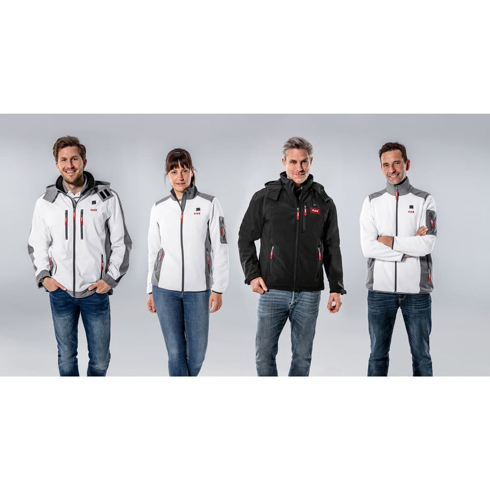 FLEX biedt zijn verwarmde jassen aan in twee varianten. Een softshell-variant , TJ 10.8/18.0 wordt gekenmerkt door een laag gewicht van 210 gram per vierkante meter. Vervaardigd in de pasvorm EU Regular Fit is deze jas leverbaar voor dames en heren. De jas bestaat van binnen en van buiten uit 100 procent polyester, is wind- en waterdicht en ademend en zodoende bijzonder robuust. Een binnenjas van zachte fleece zorgt voor een aangenaam draaggevoel en warmte. Daarnaast is de TJ 10.8/18.0 zeer onderhoudsarm en kan probleemloos op 30 graden in de wasmachine worden gereinigd. Het anti-pillingeffect voorkomt bovendien lastige pluizen en bolletjes.
