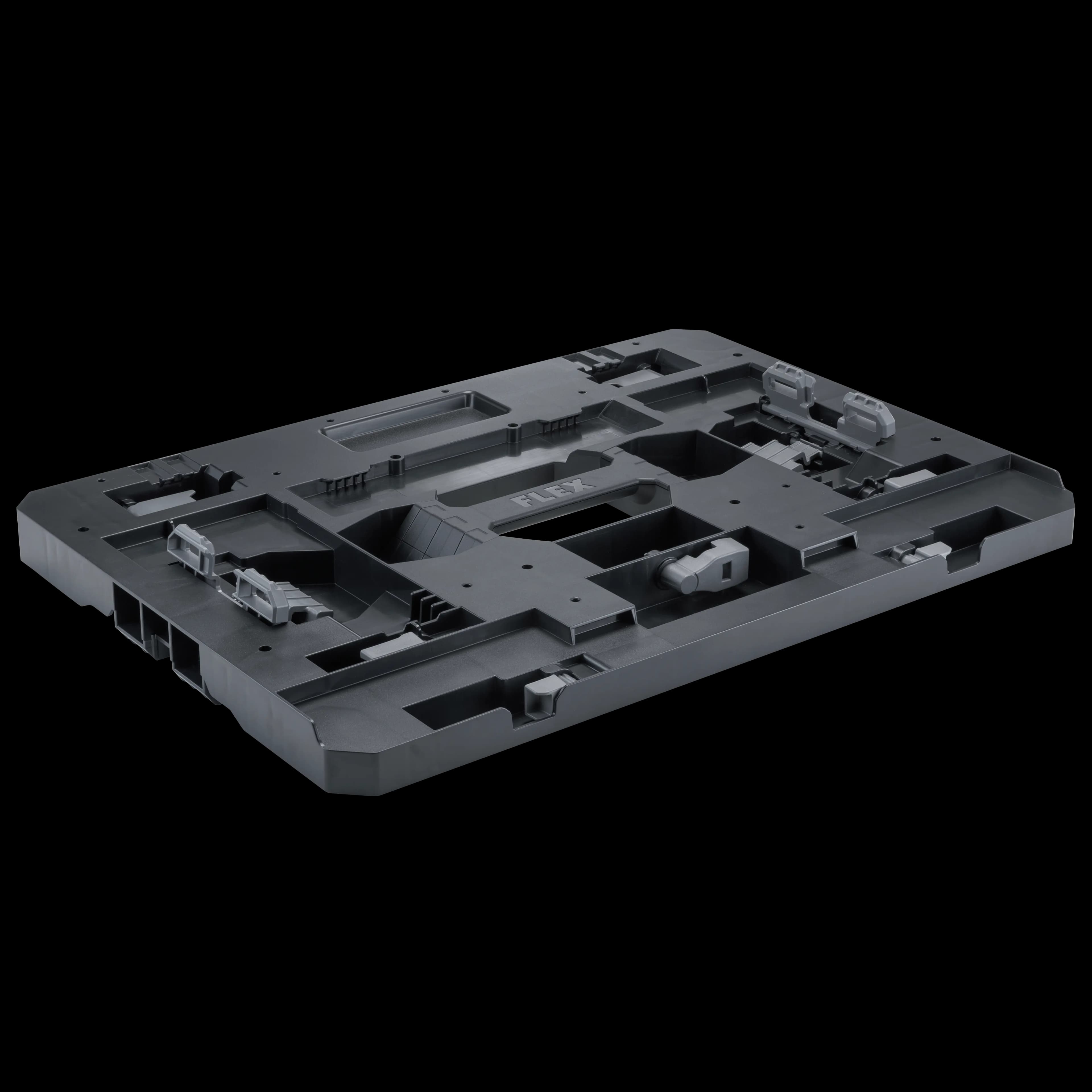 Voor de bevestiging van alle standaardboxen op het STACK PACK-systeem. Met de adapterplaat kunnen de STACK PACK-boxen worden gecombineerd met de volgende systeemboxen: Metabo/metaBOX, Makita/MakPac, FLEX/L-Boxx, Festool/Systainer, DeWalt/Tstak, Bosch/L-Boxx.