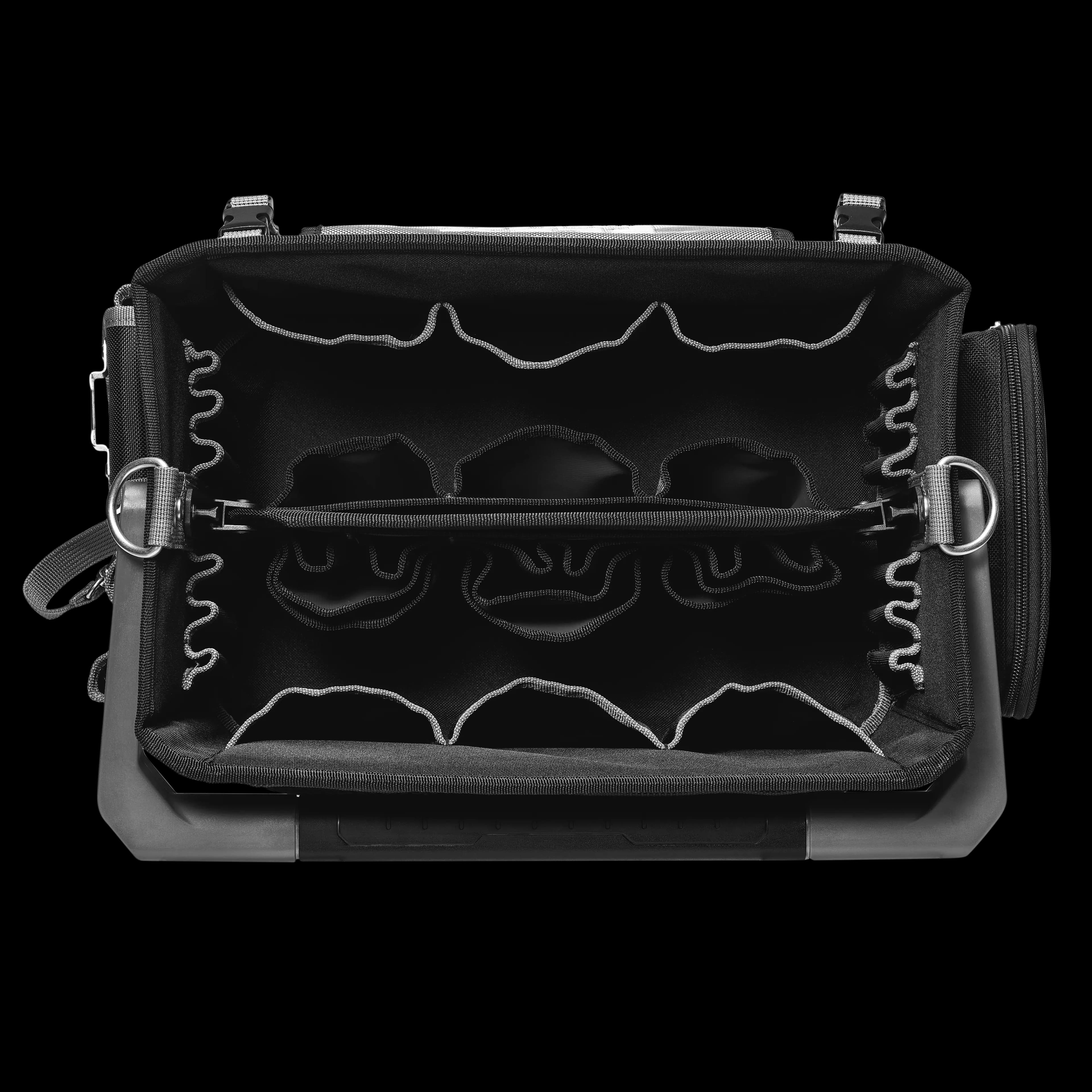 Gereedschap en accessoires zijn overzichtelijk opgeborgen in de 44 vakken en binnenvakken van de gereedschapstas. Individuele mogelijkheden door aan de binnen- en buitenkant aangebrachte vakken, evenals een uitneembare scheiding met veel vakken in het midden van de tas. De robuuste tas is gemaakt van hoogwaardig, dubbellaags polyester materiaal. De tas is voorzien van een schouderband met schoudervulling en een draaibare draaggreep voor comfortabel transport. De gereedschapstas kan met de snelsluiting aan het deksel van de boxen worden bevestigd.