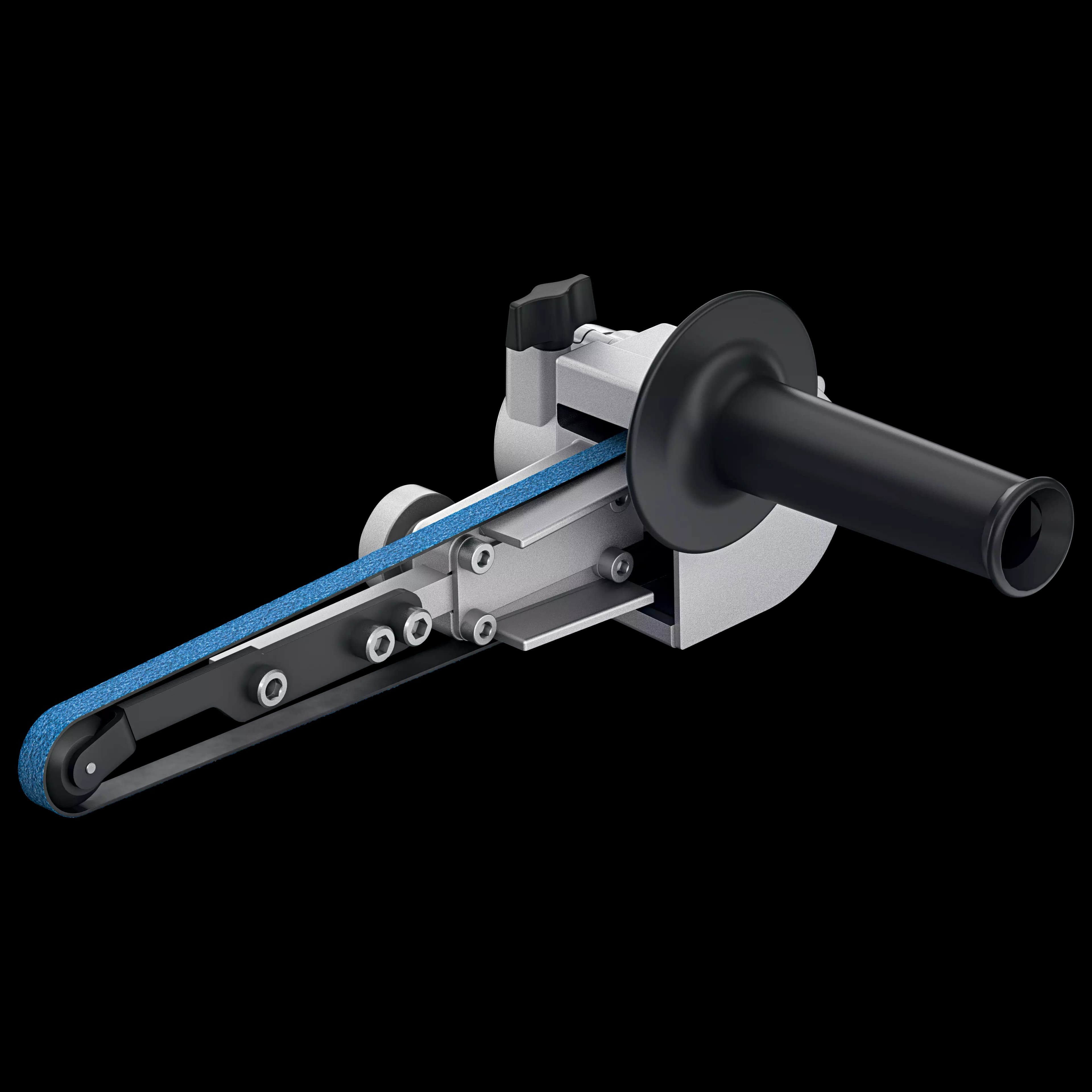 Nasadka szlifierska pilnika taśmowego do TRINOXFLEX. Montaż bez narzędzi dzięki systemowi szybkiej wymiany. Z ramionami szlifierskimi 9 i 30 mm, uchwyt boczny. Z komplet taśm szlifierskich ZIRCOFLEX 9 mm.