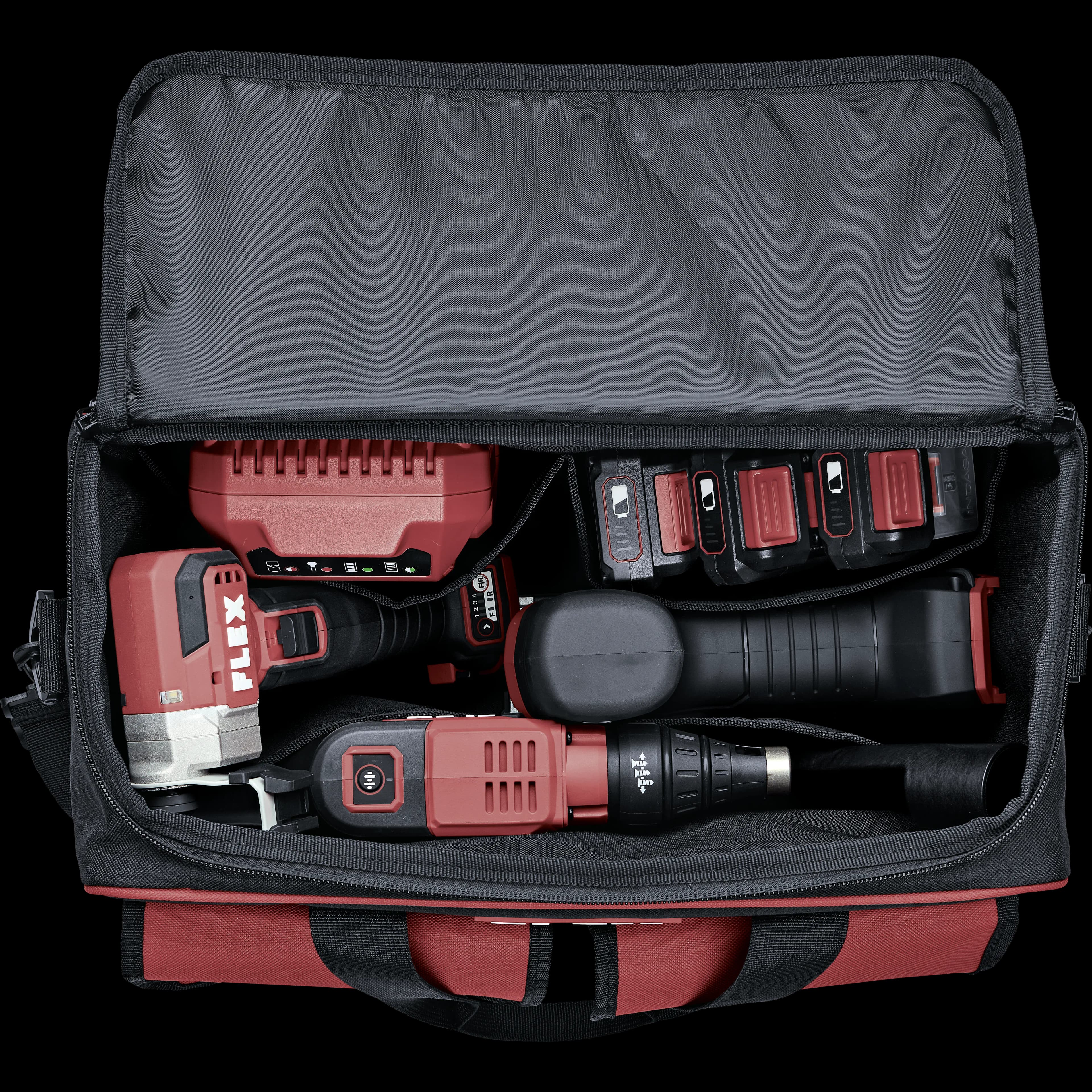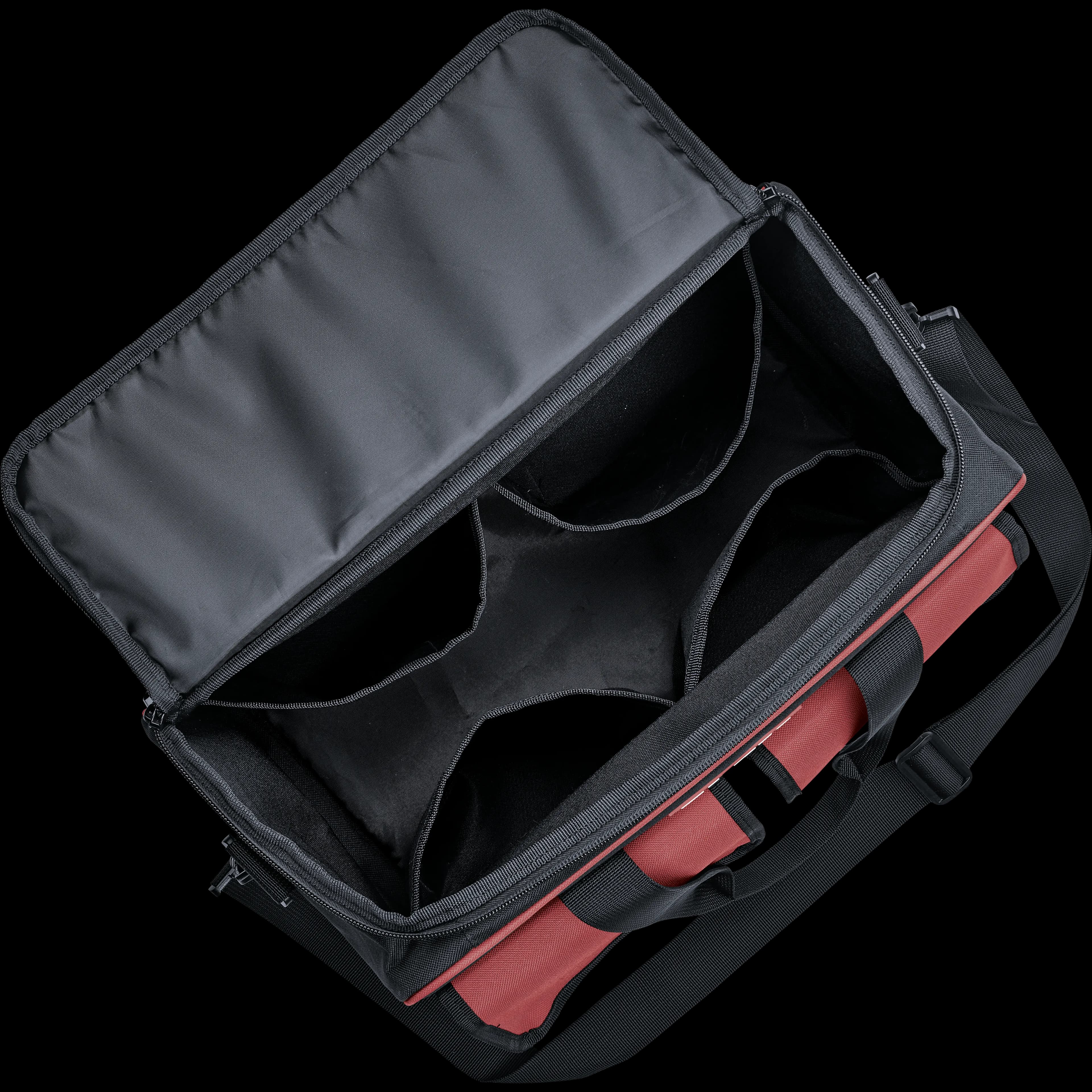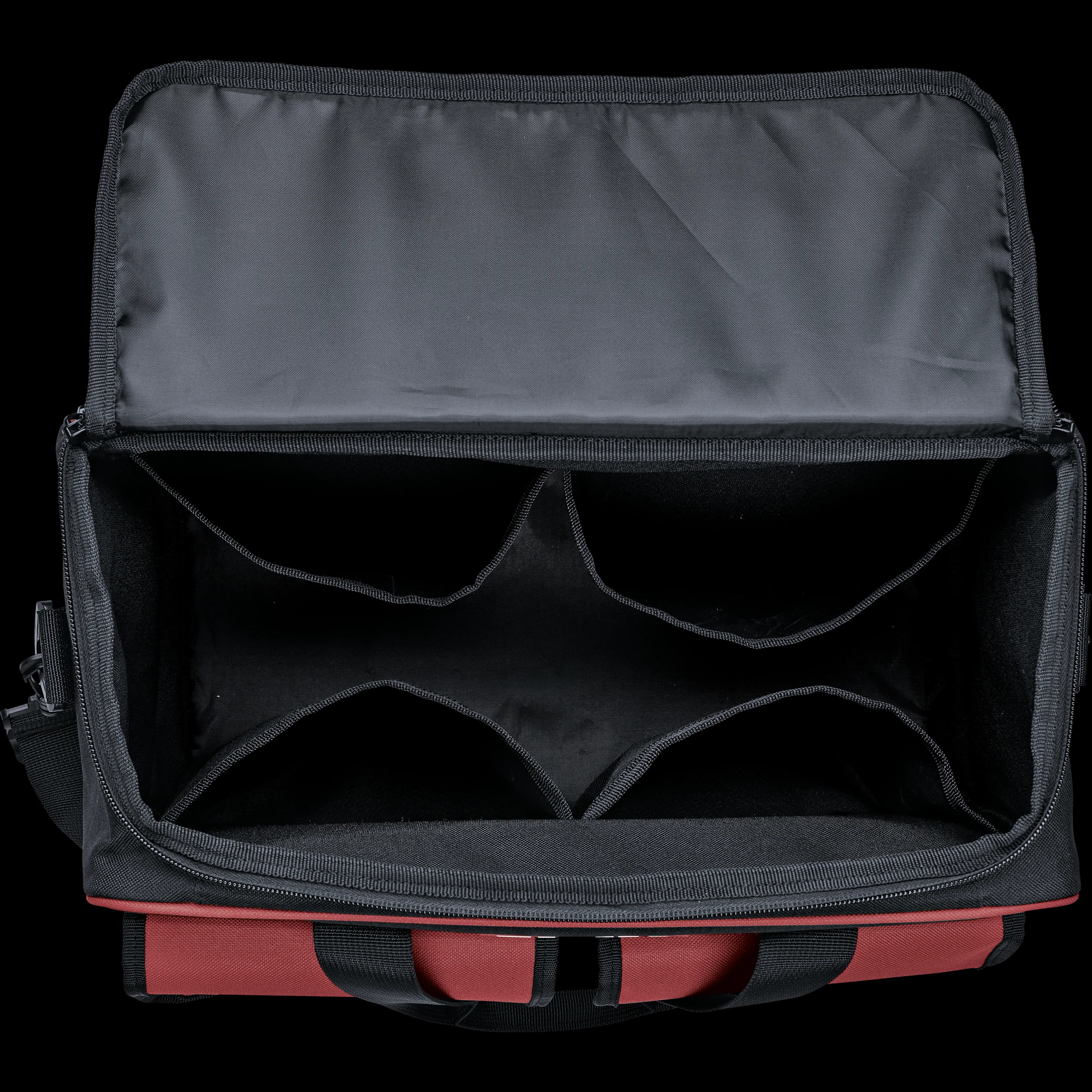 Praktyczna torba transportowa wykonana z materiału wzmocnionego tworzywem odpornym na rozdarcie i z szerokim otworem. Z dużym schowkiem wewnątrz na maksymalnie trzy urządzenia zasilane prądem o napięciu 12 V, 2 kieszeniami zewnętrznymi z przodu i schowkami na akcesoria, takie jak akumulatory, ładowarka itp. <br />